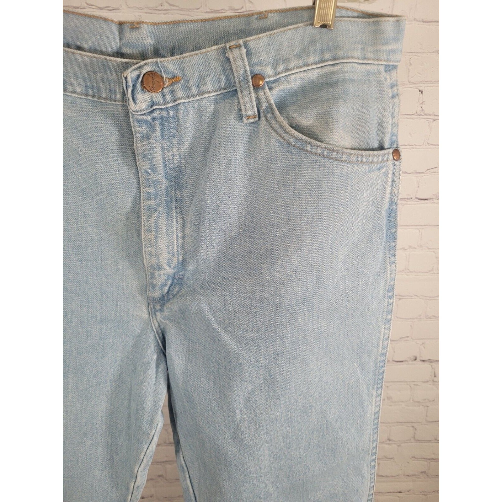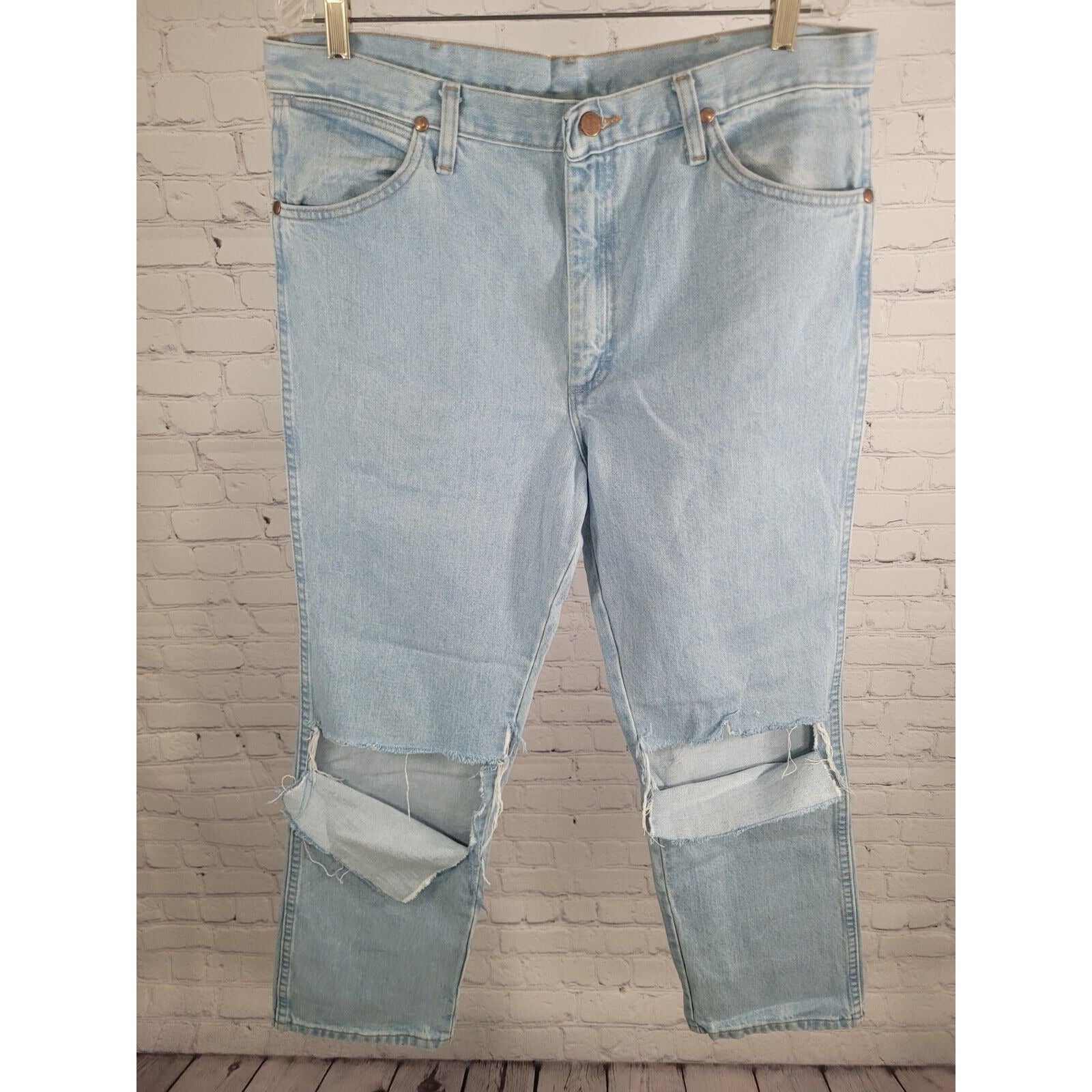 Wrangler Jeans Light Wash Distressed Made In Nicaragua Size 36 X 30.
