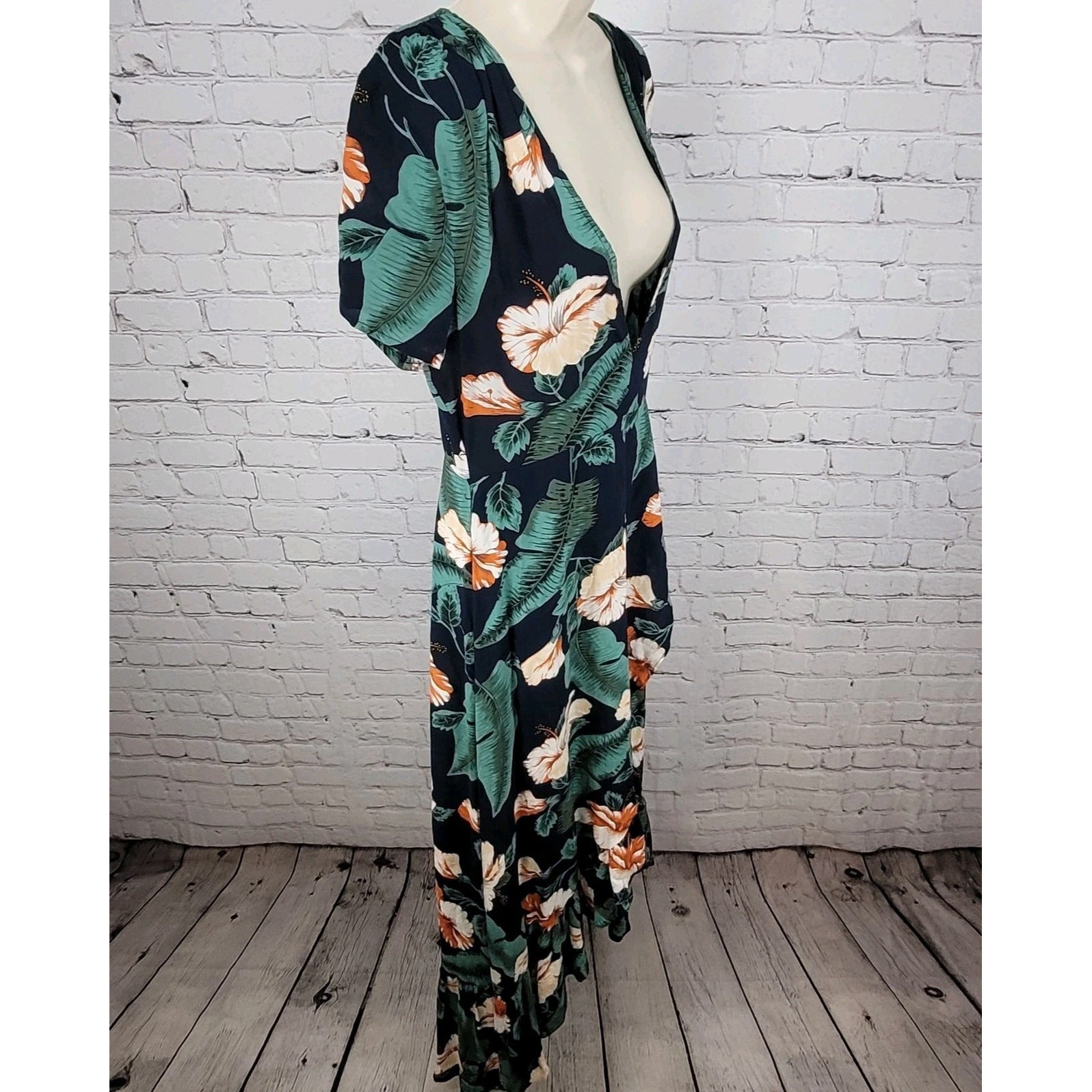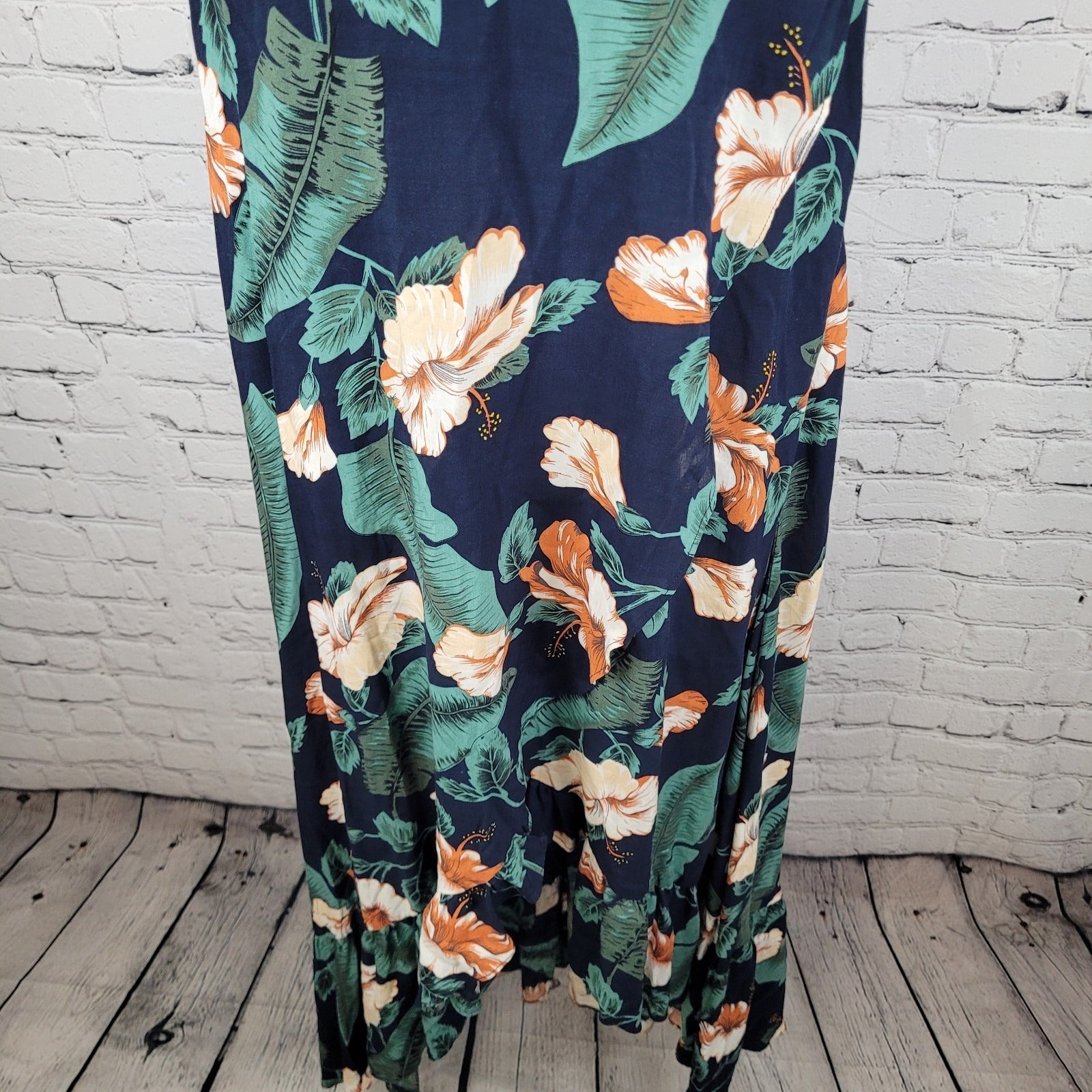 XIX PALMS Navy Hawaiian Floral Short Sleeve Wrap Hi Low Maxi Dress Hawaii Size 3
