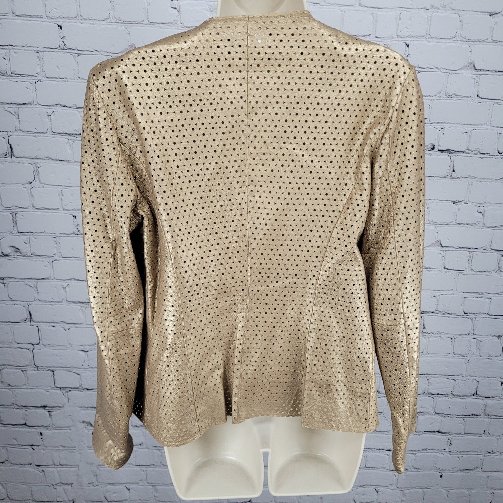 Yvonne Marie Gold Genuine Leather Open Unlined Jacket Size Small S
