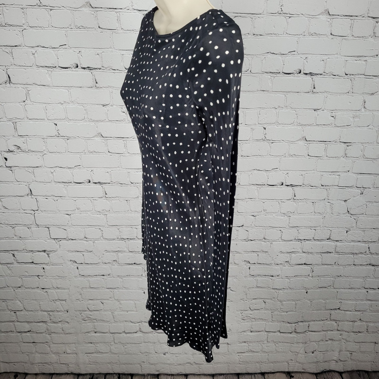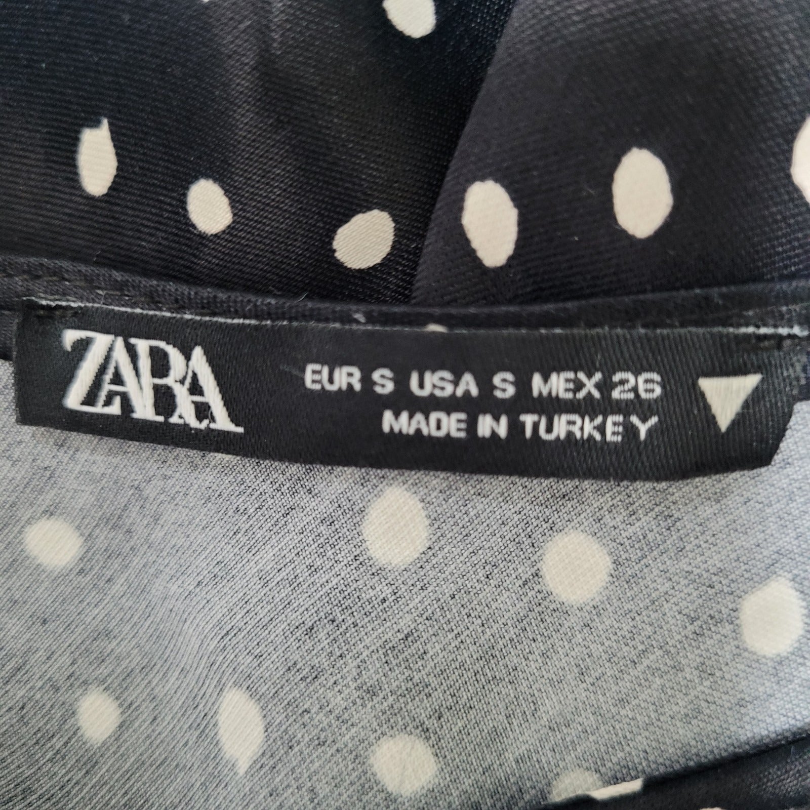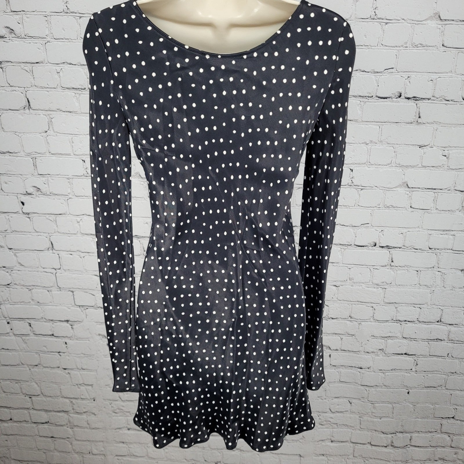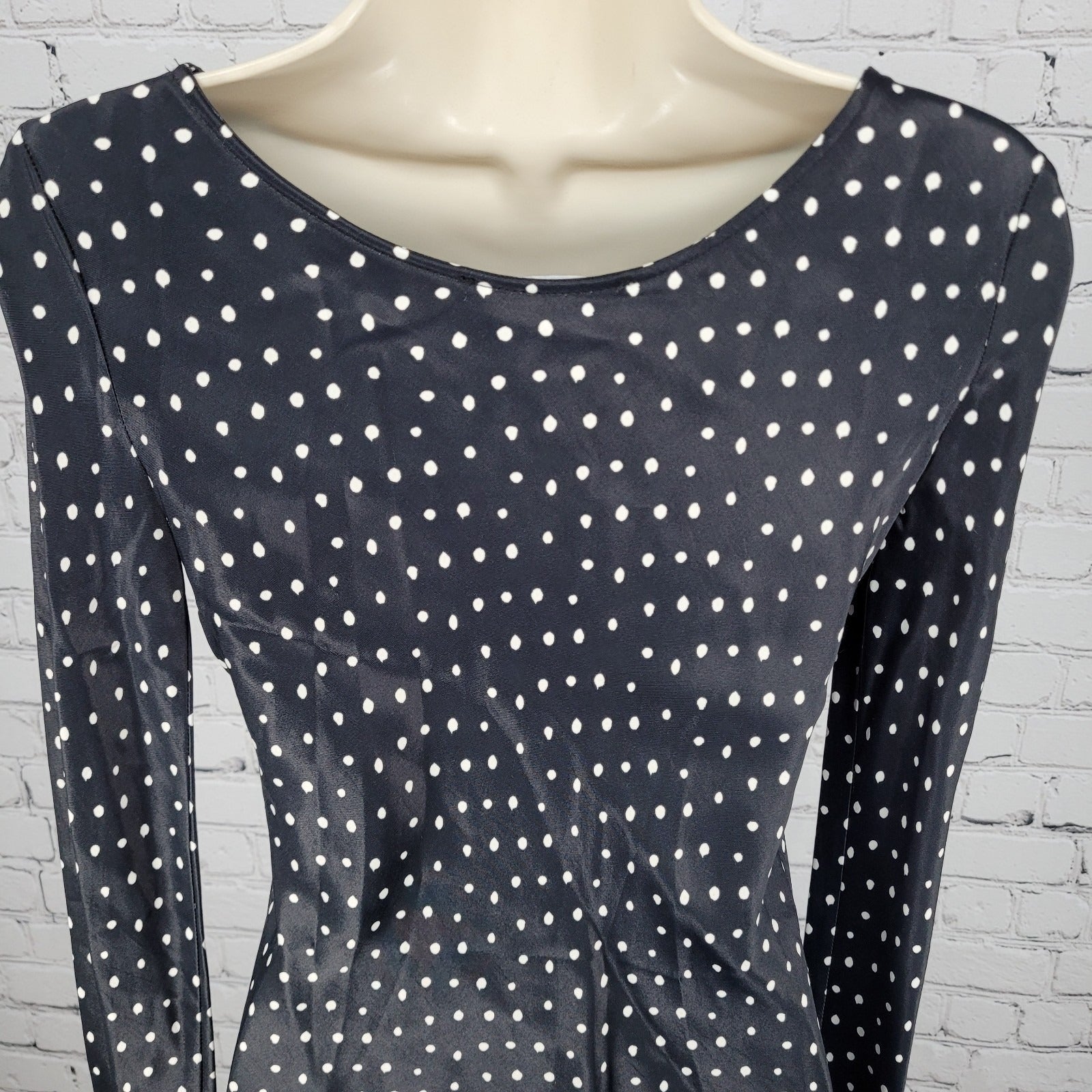 Zara Black Polka Dot Satin Stretch Long Sleeve Zipped Mini Dress Size Small S