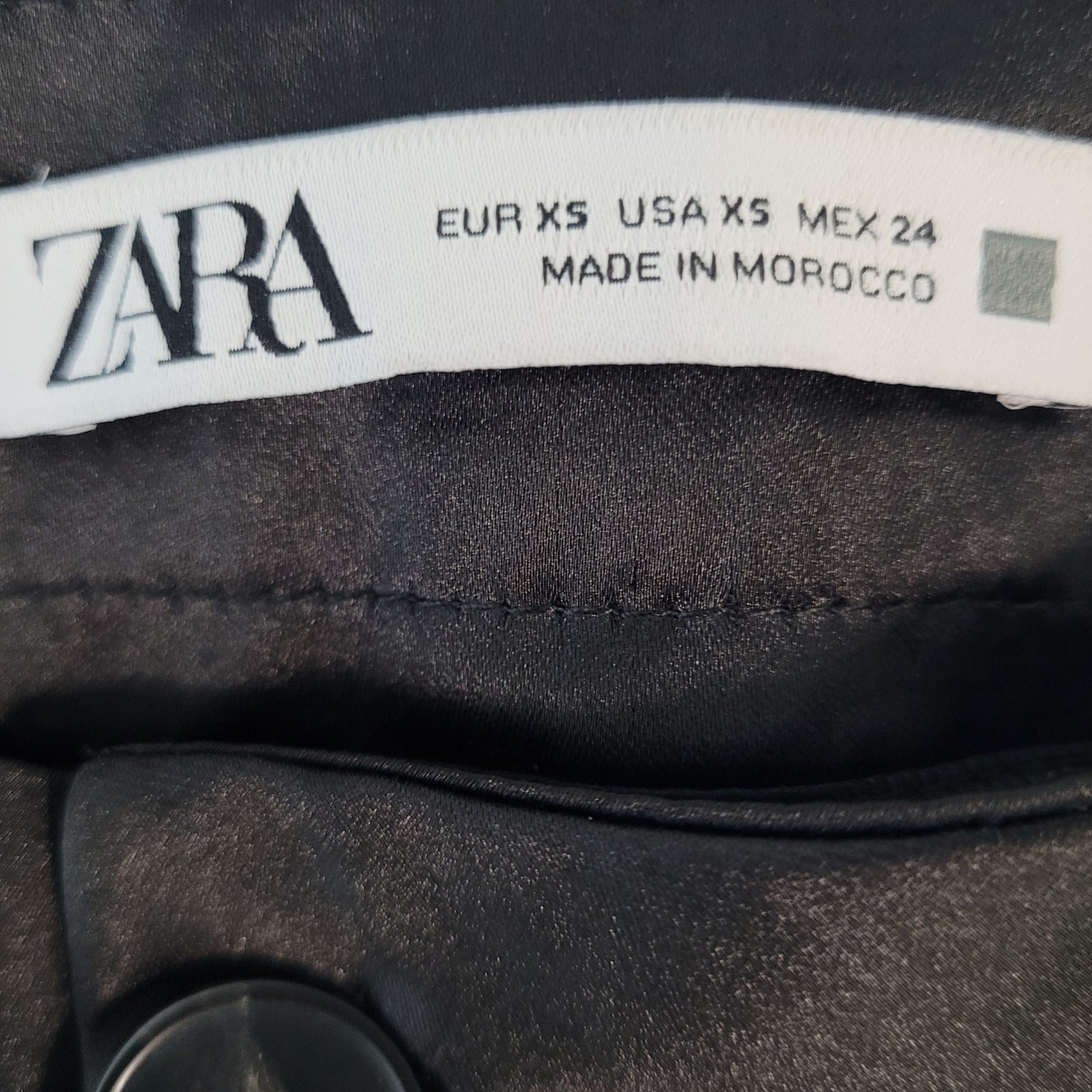 The Zara Black Silky Satin Cargo Pockets Straight Leg Mid Rise Pants in size XS (26x29) are a stylish and versatile addition to any woman's wardrobe. Made from sleek satin fabric, these pants feature cargo pockets for added functionality. The straight leg and mid rise design offer a flattering silhouette, while the classic black color makes them easy to pair with a variety of outfits. Perfect for everyday wear or dressing up for a special occasion, these pants are sure to become a staple piece.