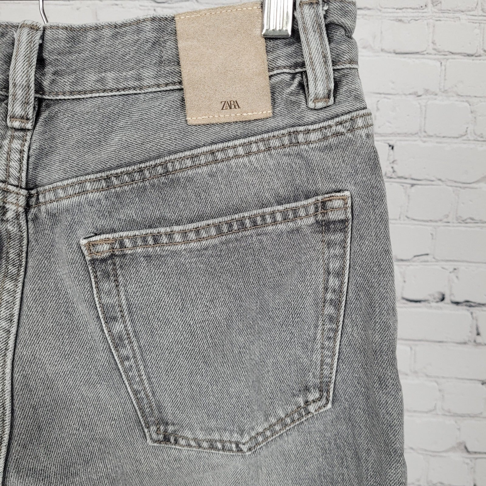 The Zara Grey 100% Cotton Denim Button Fly Straight Leg Jeans in size 30 are a stylish and versatile addition to any woman's wardrobe. Featuring a solid gray color and a high-rise fit, these jeans offer a classic and timeless look. Made with a cotton blend material, they are comfortable and durable for everyday wear. The button closure adds a touch of sophistication, while the straight leg style and distressed accents give a trendy edge. Perfect for the summer, fall, and spring seasons, these jeans are a must-have for a chic and effortless outfit.