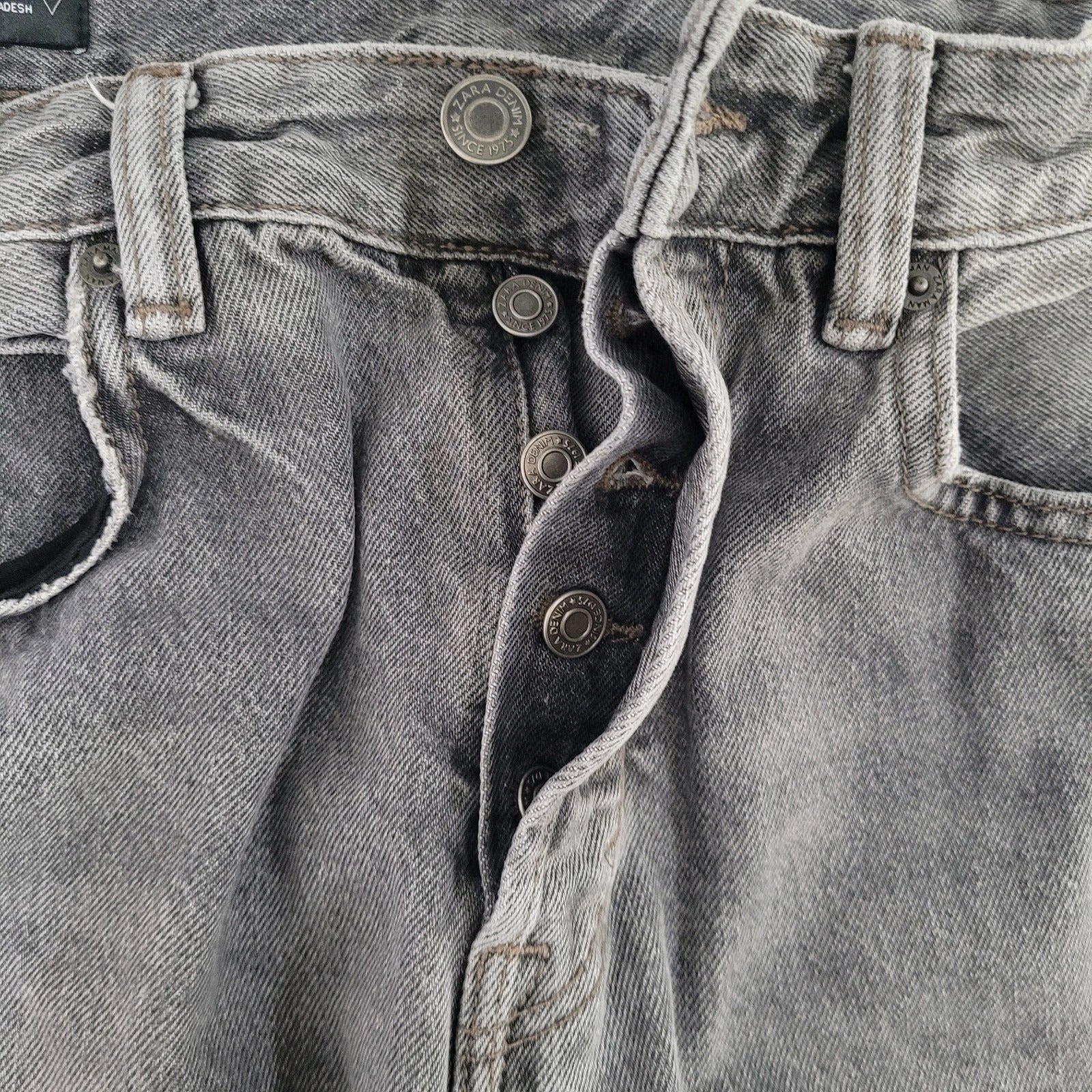 Zara Grey 100% Cotton Denim Button Fly Straight Leg Jeans Size 30 (28x30)