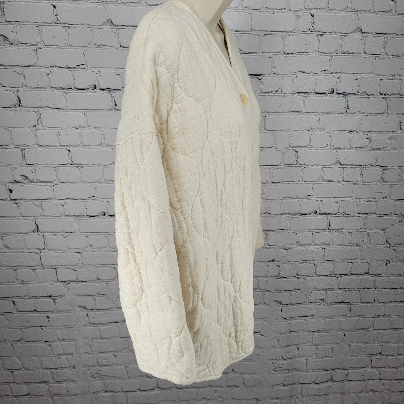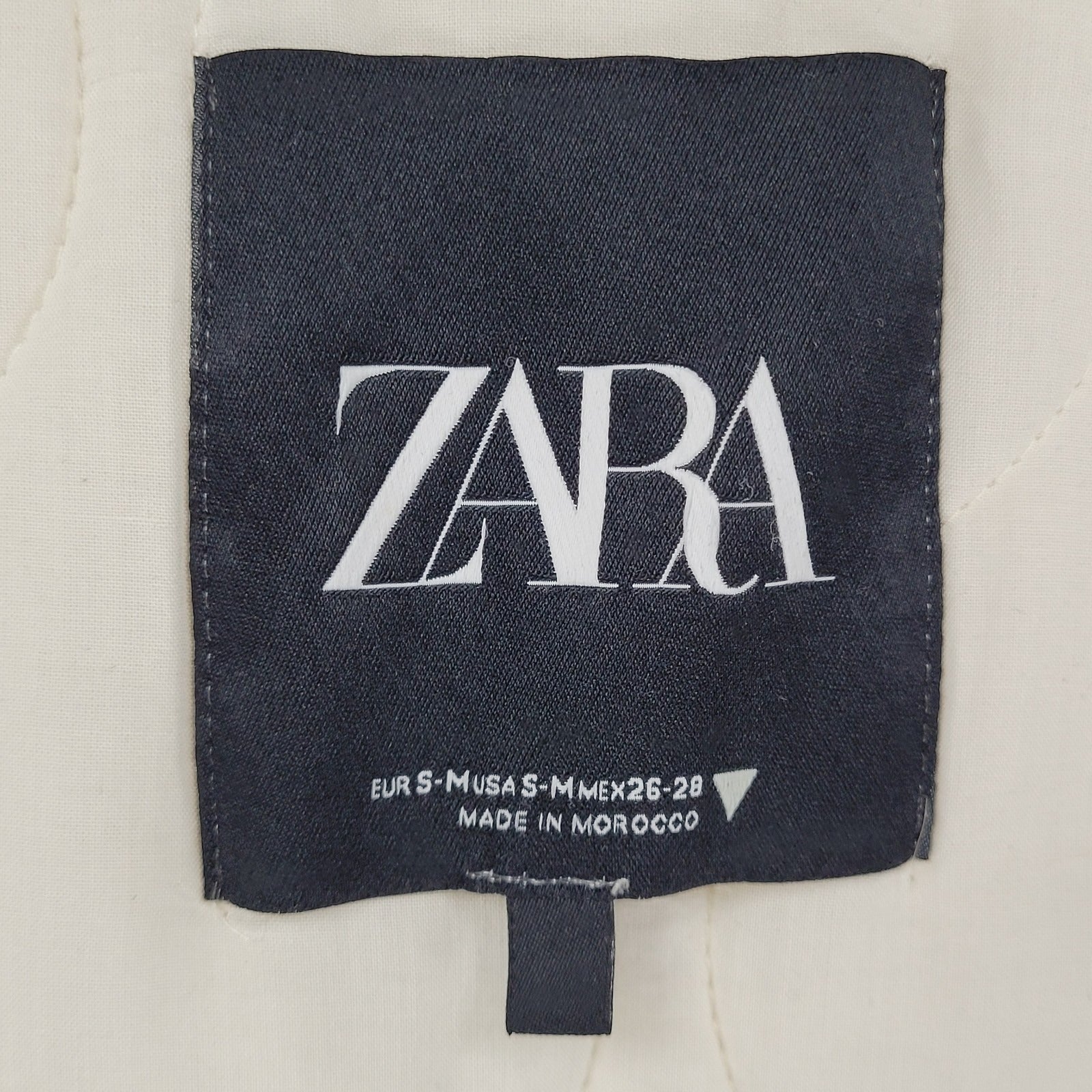 Zara Ivory Cream Quilted Cotton Buttoned Collarless Pockets Jacket Size Small S