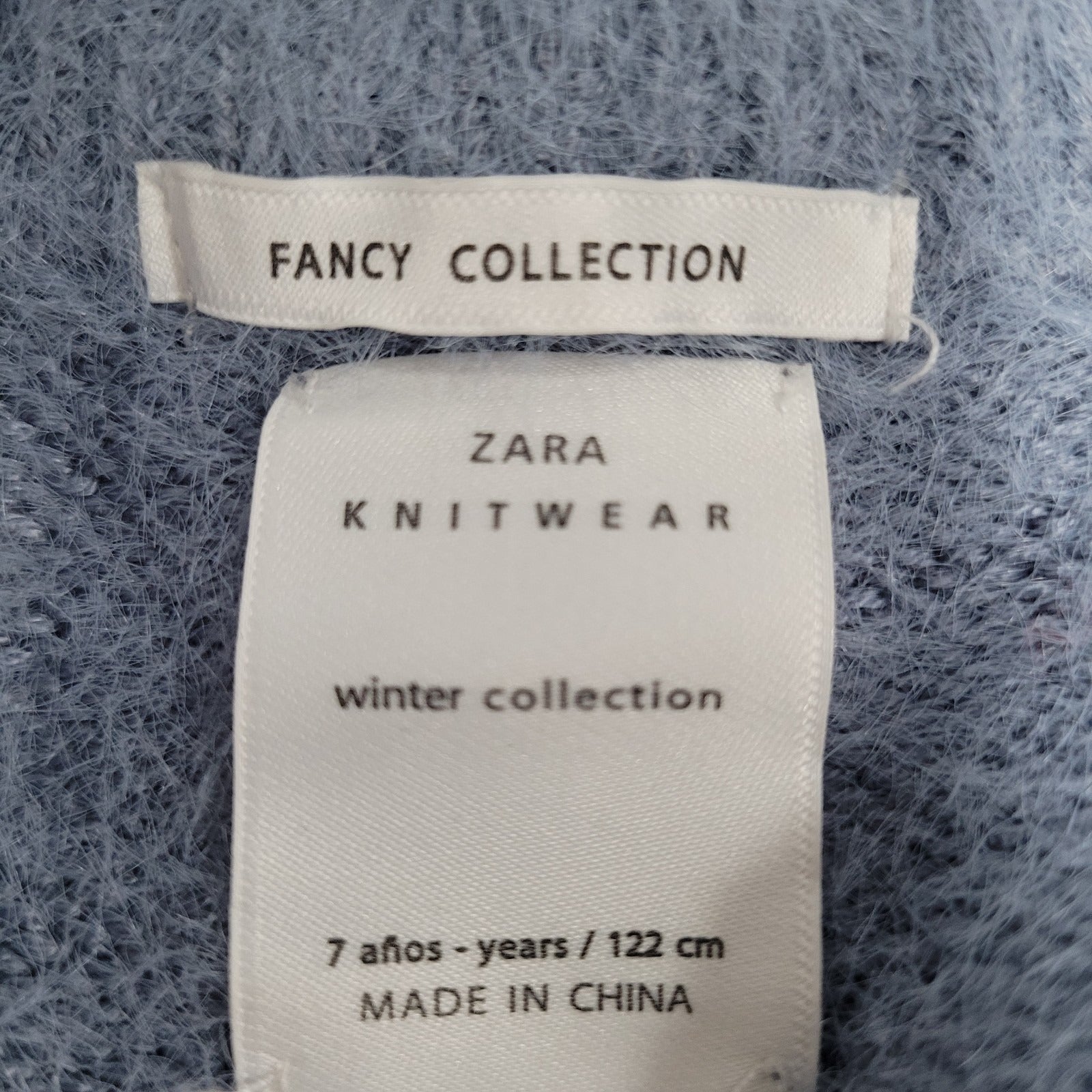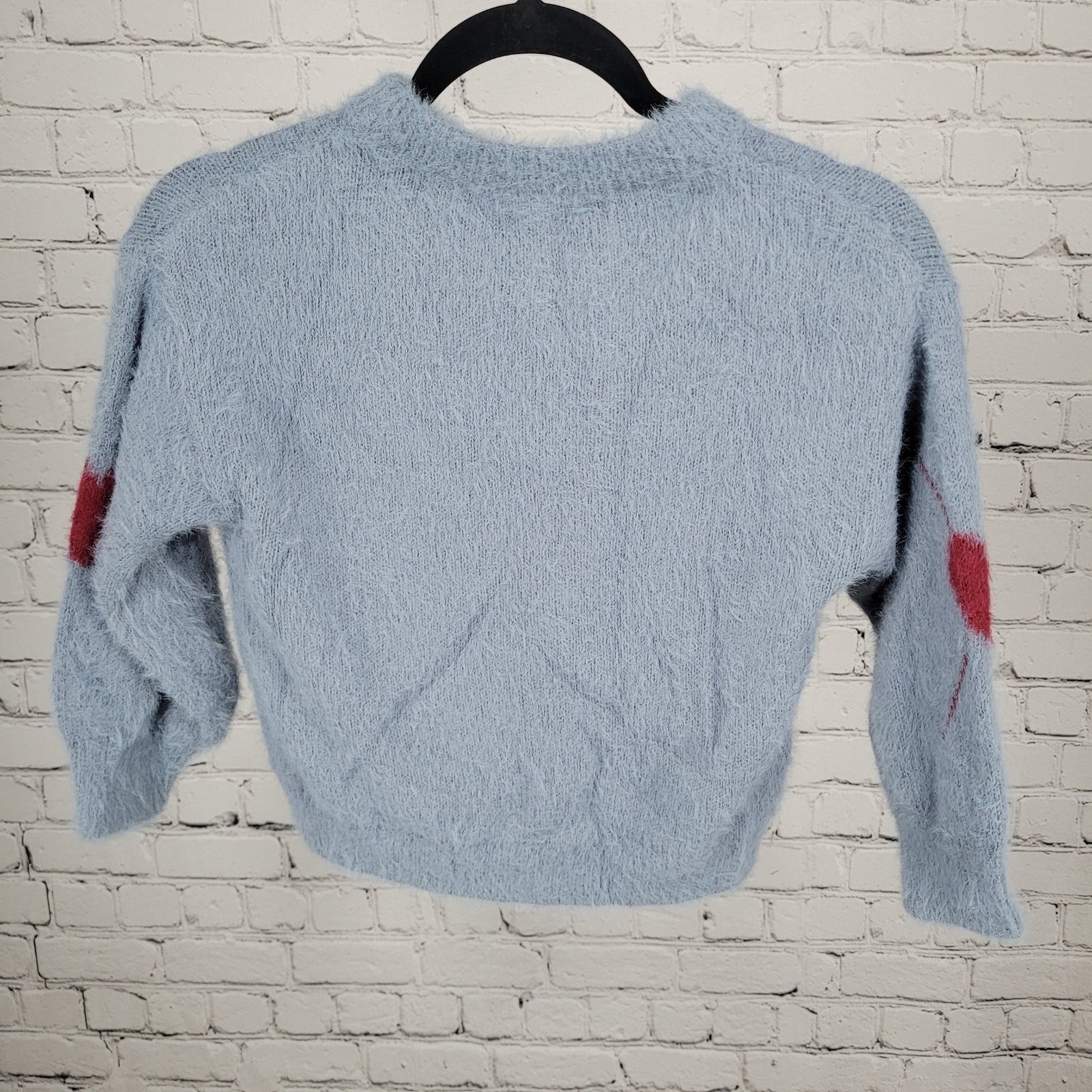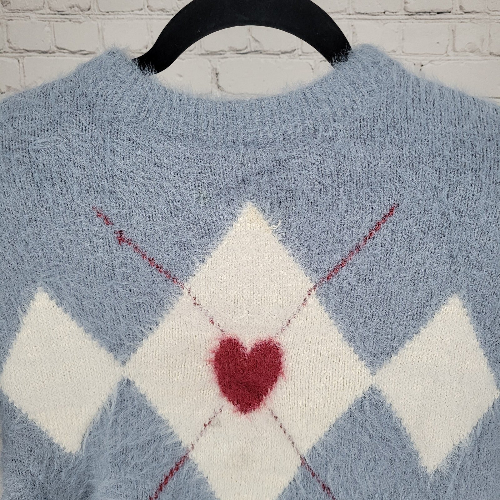 Zara Knitwear Fancy Collection Blue Argyle Heart Long Sleeve Sweater Girls 7