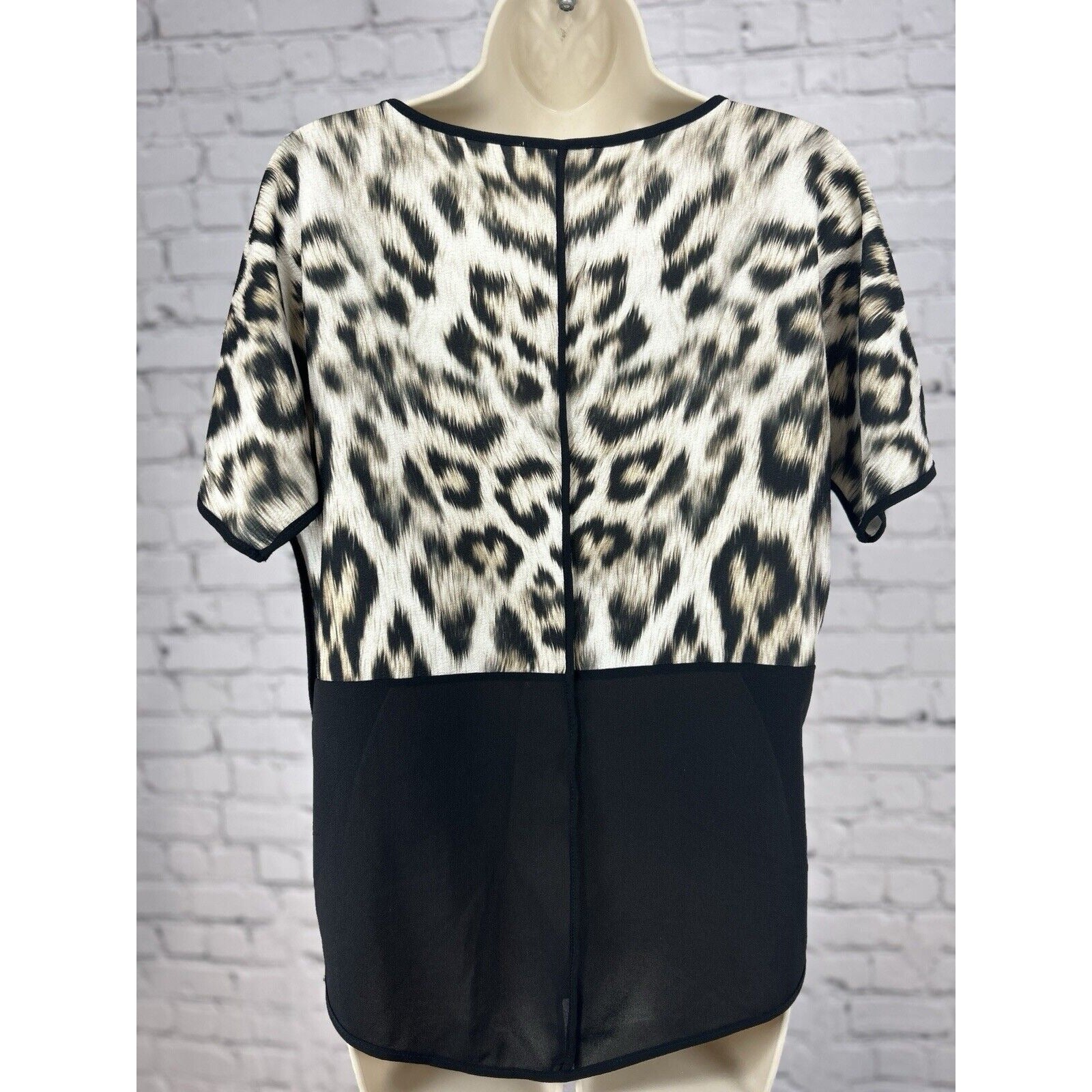 Zara Leopard Color Block Black Trim Short Sleeve Dress Blouse Top Size Small S