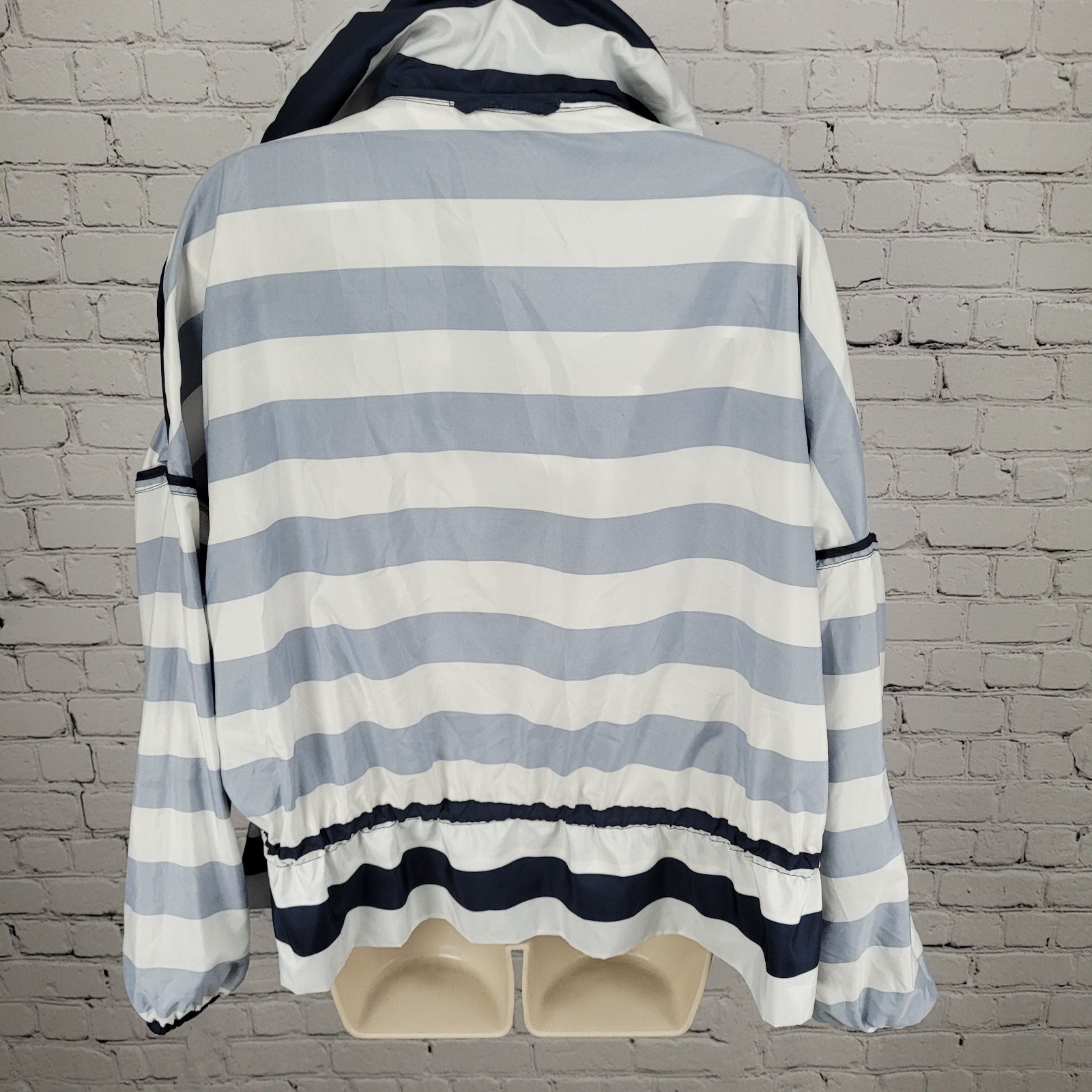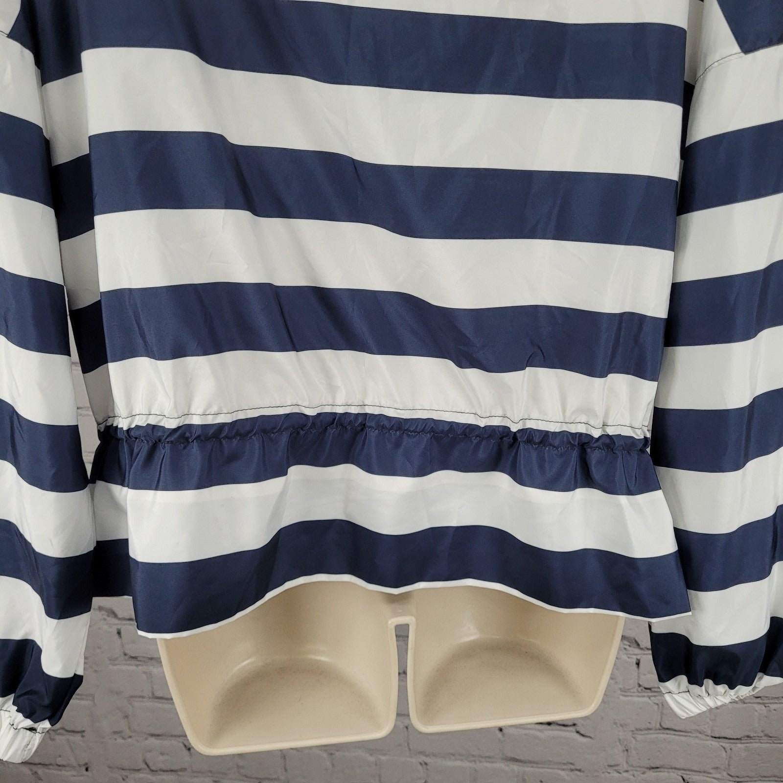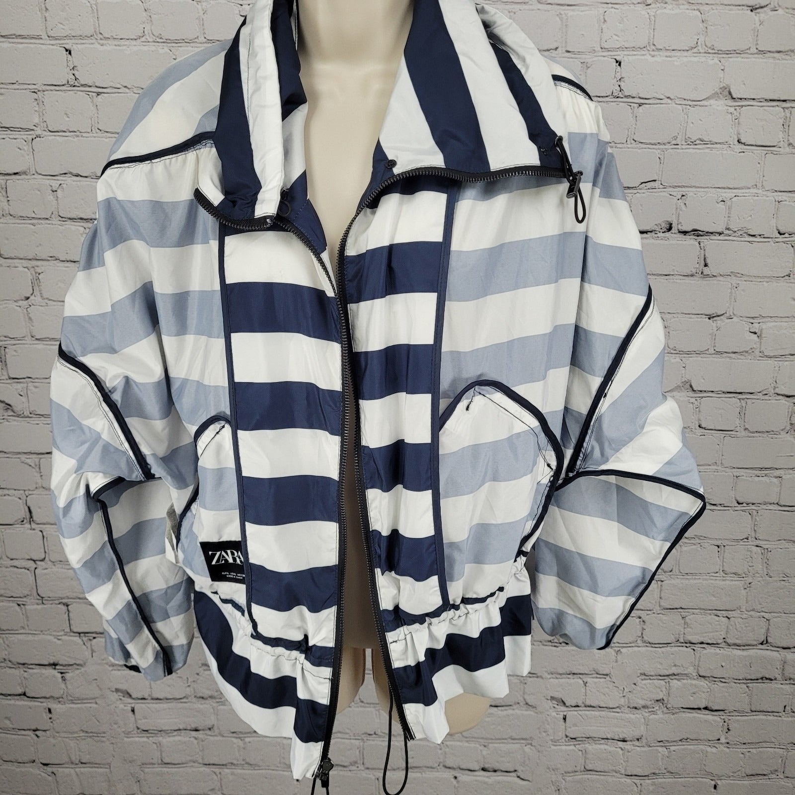 Zara Navy White Boxy Hideable Hood Lightweight Windbreaker Jacket Size Large L