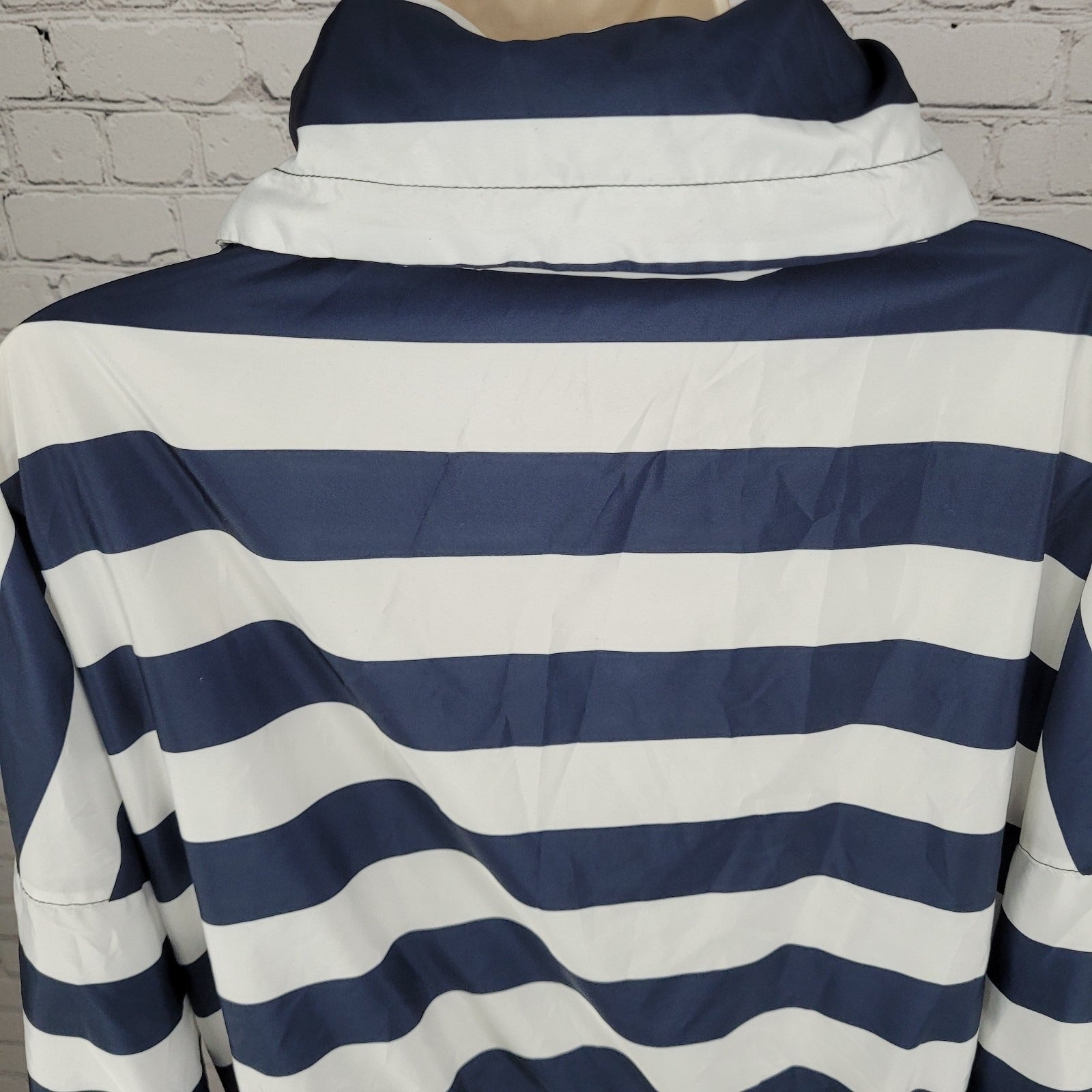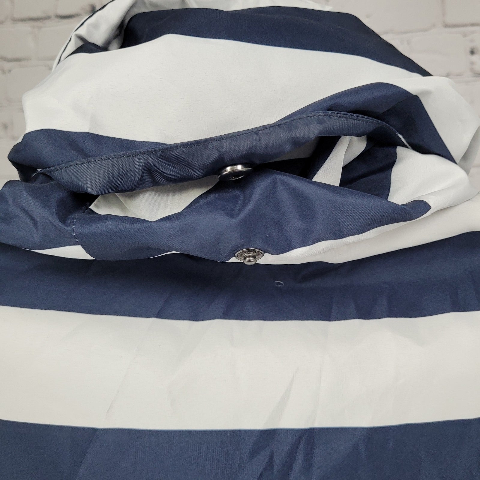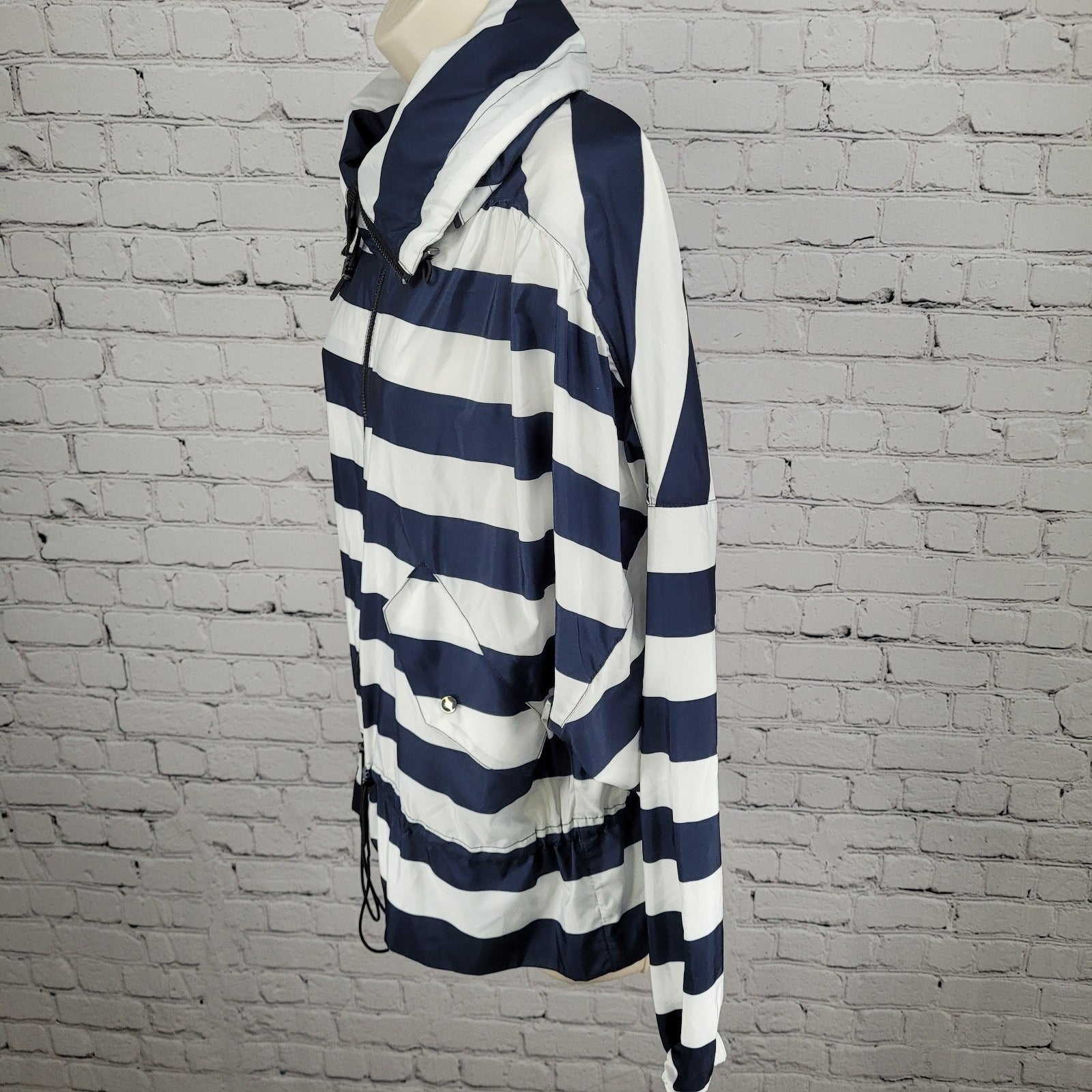 Zara Navy White Boxy Hideable Hood Lightweight Windbreaker Jacket Size Large L