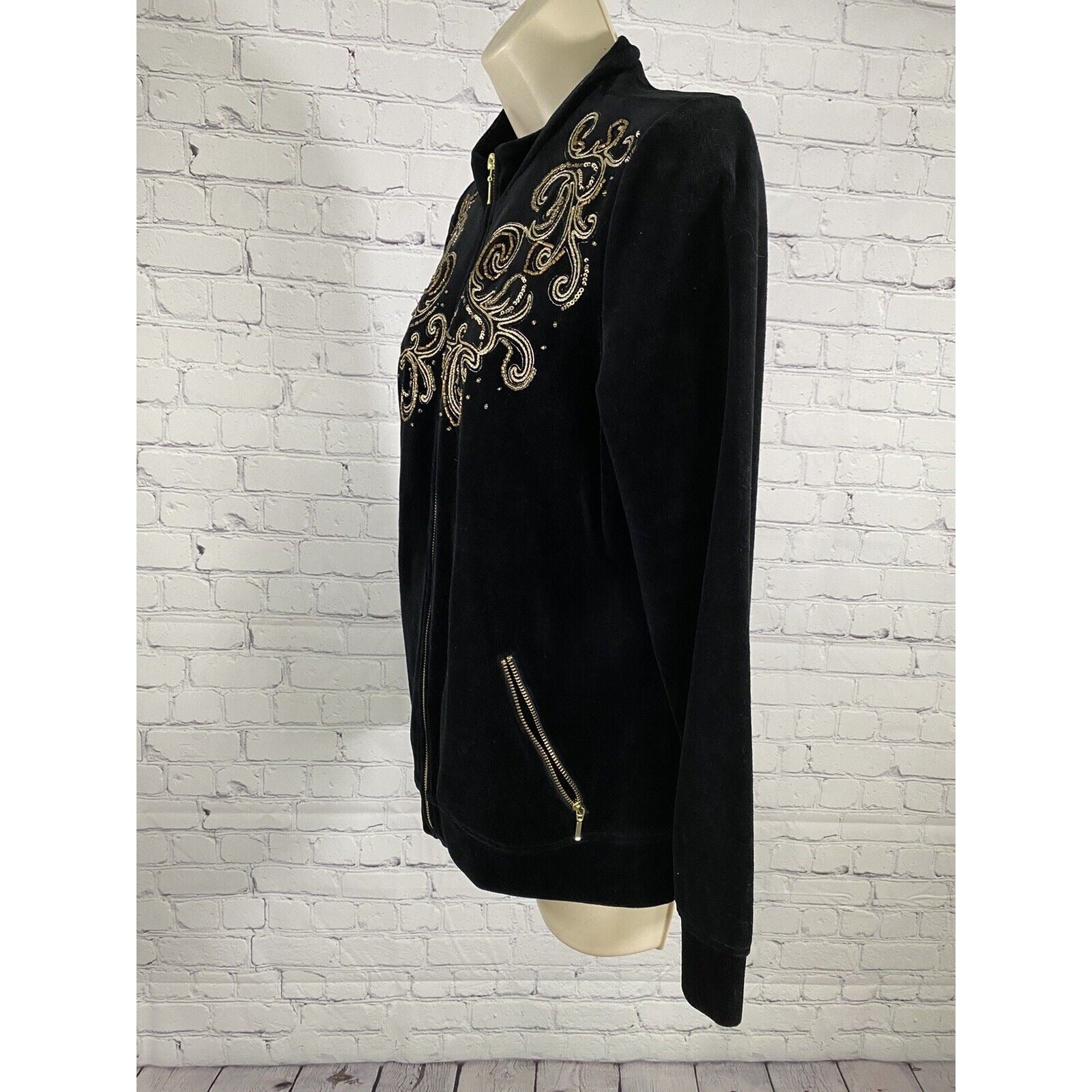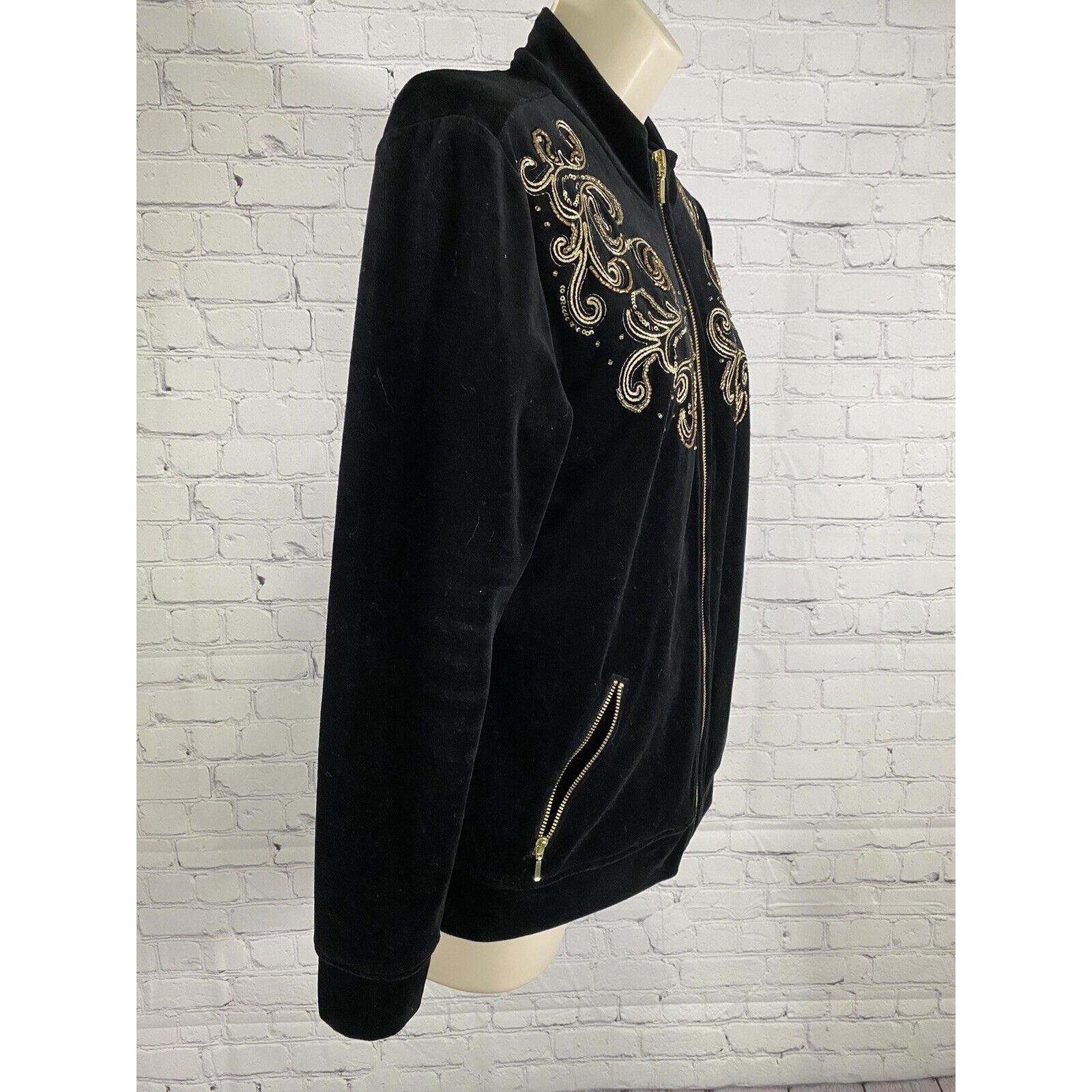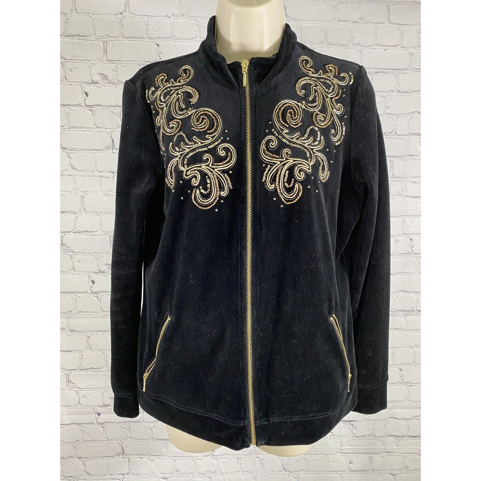 Zenergy By Chicos Black Embroidered Beaded Sequined Full Zip Jacket Womens M.